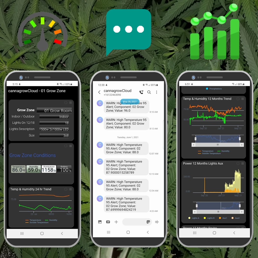 A Grow Zone logs the data from 1 SmartThings Multisensor and 1 to 8 SmartThings Smartplugs. Use SmartThings to control and automate grow lights, AC units, dehumidifiers and other powered gear and cannagrowCloud will record temperature, humidity, light levels, power on/off, power (watts) and energy (kWh) usage and securely store the data in the cloud.