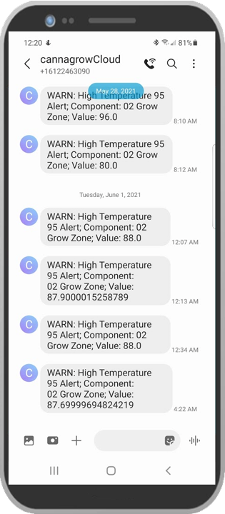 • Notifications for High/Low temperature and humidity (95/50 temperature 80/40 humidity)